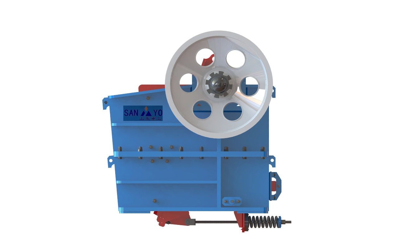廣義上來講,液壓顎式破碎機(jī)是顎式破碎機(jī)中的一種,所以,在外觀上,兩者大同小異,不在這一行的話,基本很難區(qū)分(辨別)。液壓顎式破碎機(jī)的組成部分除了有和普通顎式破碎機(jī)一樣的動定顎板,主軸,軸承,側(cè)板,動案板之外,最主要的增加了對動顎板有保護(hù)液壓缸系統(tǒng)和肘板。下面,就是sanyyo生產(chǎn)的HV歐版液壓顎式破碎機(jī)及結(jié)構(gòu)剖析圖: